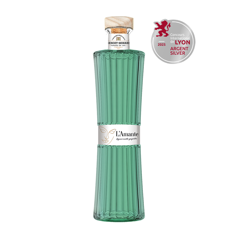L’Amante est une création Originale BENOIT SERRES. Cette liqueur naturelle peu sucrée est le résultat du délicat mariage de la menthe verte et du Gingembre… Elle révèle une fraîcheur intense et envoutante. Cette recette est une véritable surprise. La bouche est fraîche, très agréable, délicate, somptueuse sur une finale légèrement épicée. Une vraie « tempête » qui reste sur la langue… Une pure tentation L’Amante verte à un profil chlorophylle. L’Amante est à savourer bien fraîche sur un simple lit de glace….